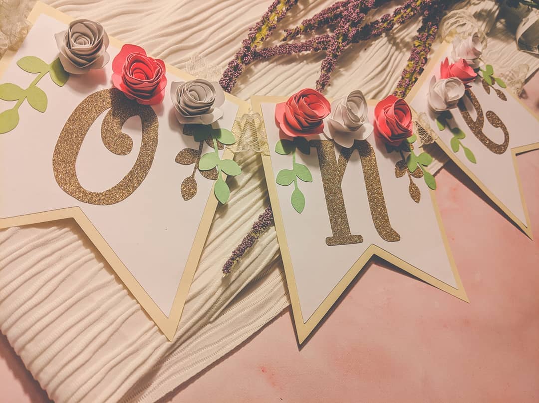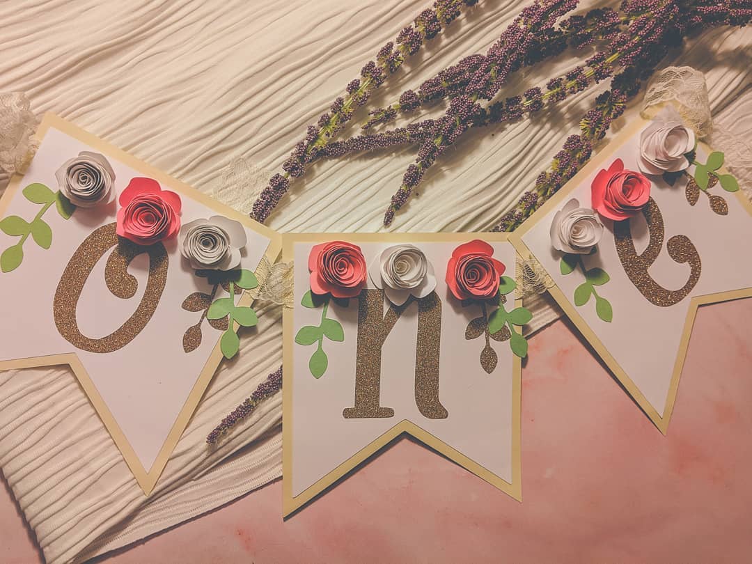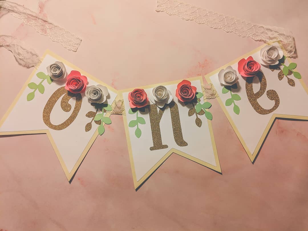 Rolled Flower 1st Birthday Banner: